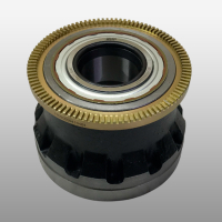Ступица передняя в сборе с подшипниками бренда Shaft-Gear - артикул HD90009410457. Размеры: длина - 117 мм, наружный диаметр - 174 мм/130 мм, внутренний диаметр - 57,5 мм, количество отверстий крепления - 12, глубина отверстия - 40 мм, диаметр резьбы - 16 мм, шаг резьбы - 1,5, длина по центрам отверстий - 145 мм, диаметр с кольцом AБС - 160 мм, толщина кольца АБС - 12,5 мм, количество проточек кольца АБС - 100.